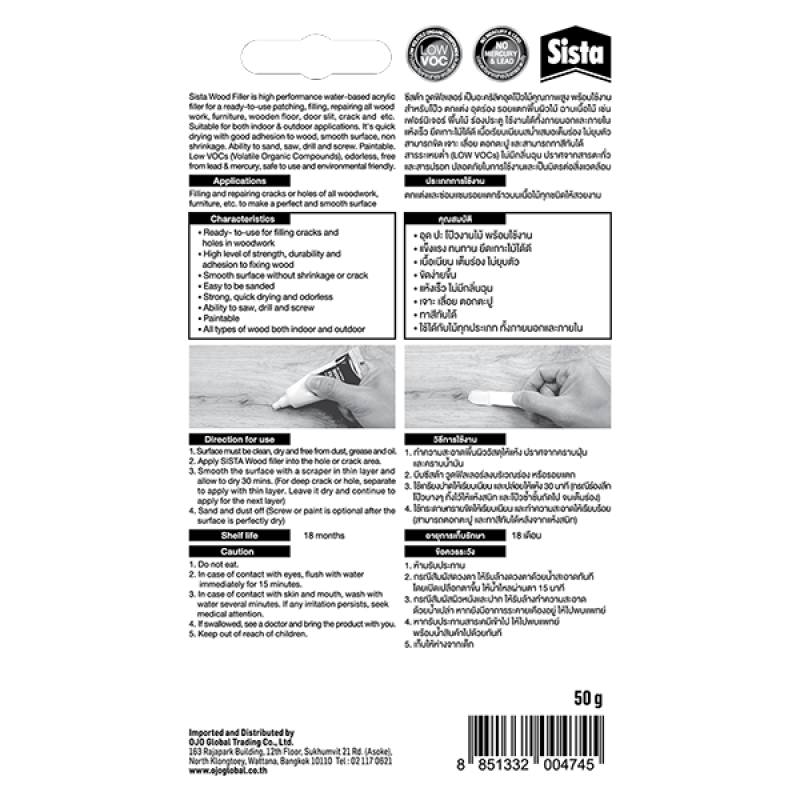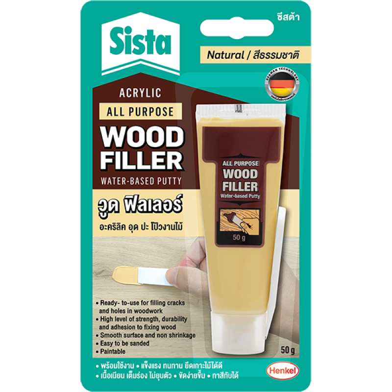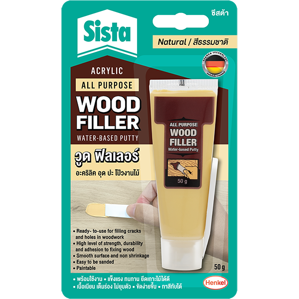 เป็นอะคริลิคอุดโป๊วไม้คุณภาพสูง พร้อมใช้งาน สำหรับโป๊ว ตกแต่ง อุดร่อง รอยแตกพื้นผิวไม้ ฉาบเนื้อไม้ เช่น เฟอร์นิเจอร์ พื้นไม้ ร่องประตู ใช้ได้ทั้งภายในและภายนอก แห้งเร็ว ยึดเกาะไม้ได้ดี เนื้อเรียบเนียนสม่ำเสมอ เต็มร่อง ไม่ยุบตัว สามารถขัด เจาะ เลื่อย ตอกตะปู และสามารถทาสีทับได้ สารระเหยต่ำ (LOW VOCs) ไม่มีกลิ่นฉุน ปราศจากสารตะกั่วและสารปรอท ปลอดภัยในการใช้งานและเป็นมิตรต่อสิ่งแวดล้อม